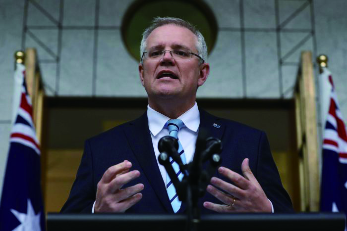 澳洲第30任总理莫里森8月26日在堪培拉发表演说。(图/澳广网)