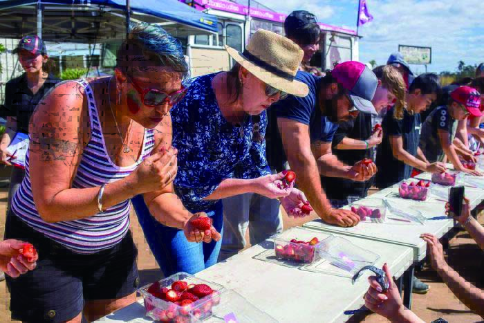 昆州举办Bundaberg草莓节,支持损失严重的草莓种植者。图为吃草莓比赛。(图/澳广网)
