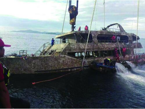 11月17日,泰国普吉倾覆沉没的“凤凰”号游船被打捞出水。(新华社)
