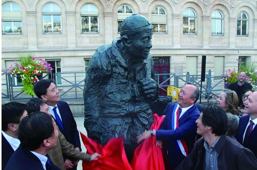 今年9月20日,一战华工纪念铜像落成仪式在巴黎举行。铜像坐落于巴黎市中心的里昂火车站广场。(中新社)